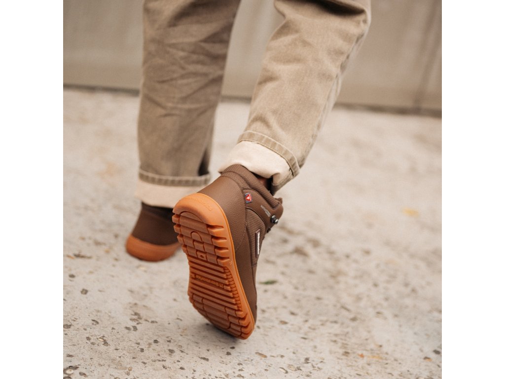 Zimní kotníčkové barefooty v tmavě hnědé barvě, které zvládnou déšť, sníh i vyřizování ve městě. Díky nepromokavé paropropustné membráně Tvé nohy zůstávají suché, a propracovaná technologie Primaloft je navíc udrží v teple. Když si jednou obuješ boty UrbanEdge už nebudeš chtít jiné. Prosím zohledněte konstrukci podšívky, která může pocitově zmenšovat vnitřní prostor boty. Doporučujeme vybrat větší velikost.