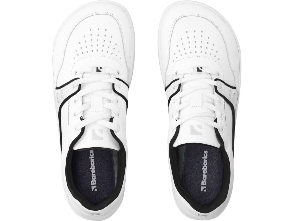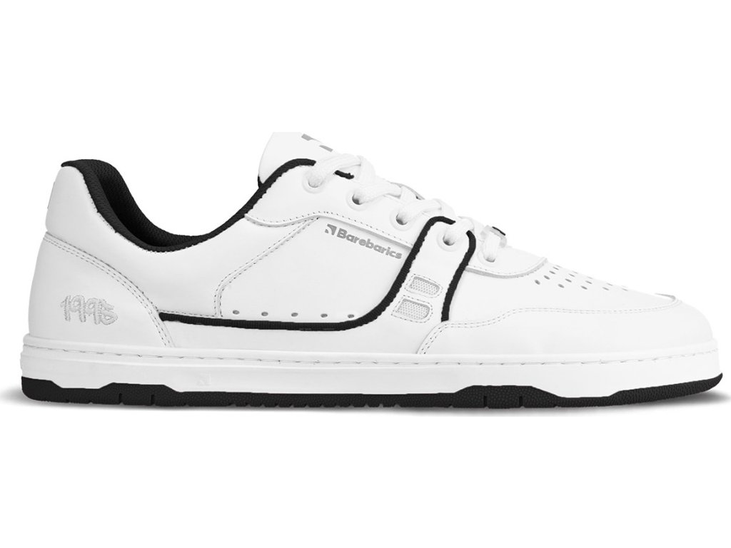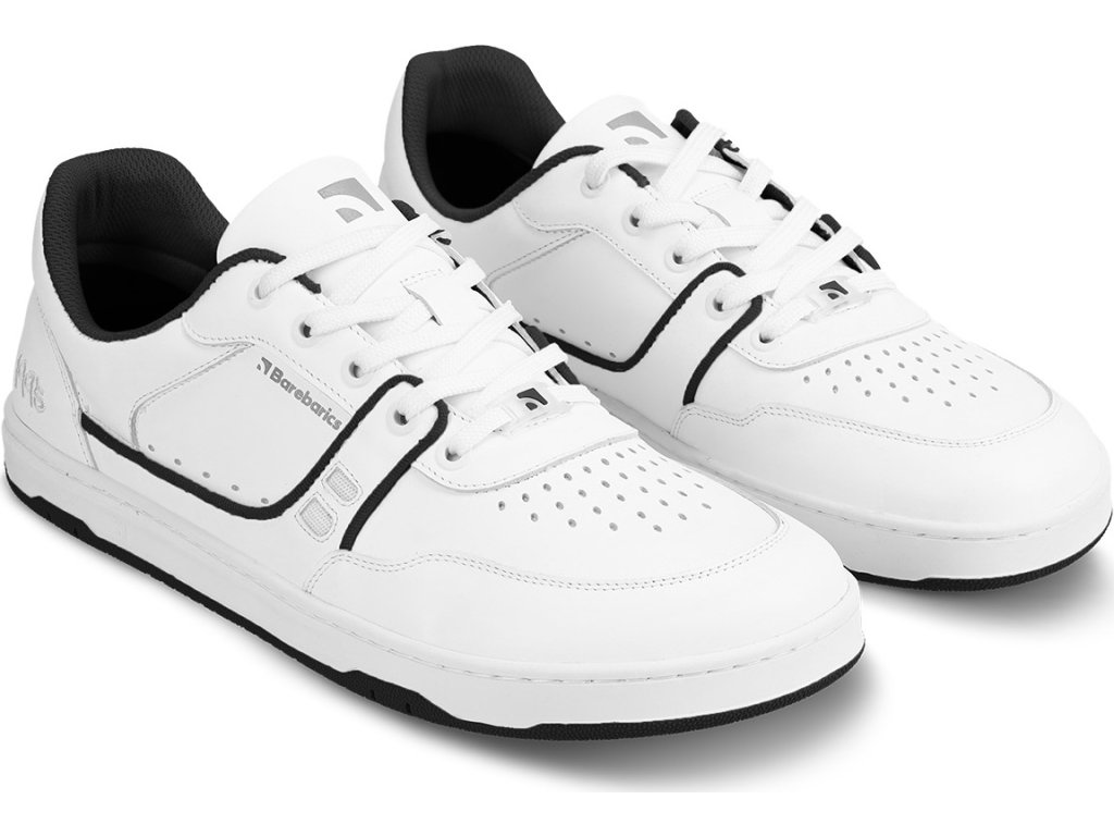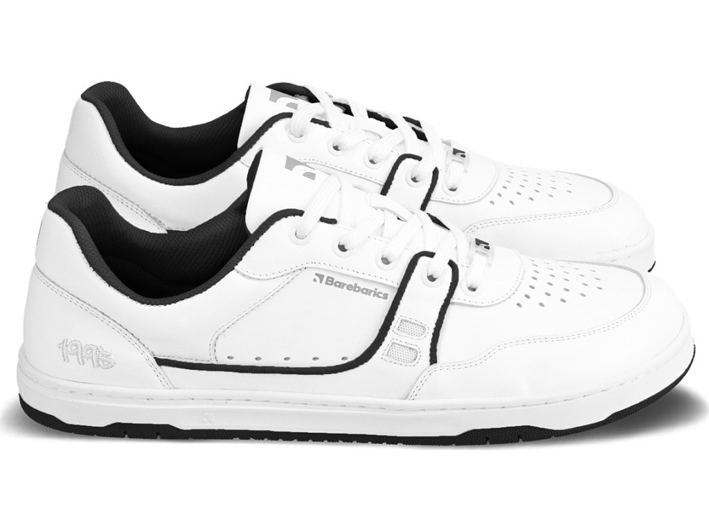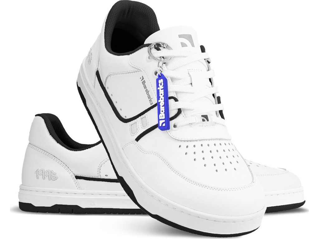 Barefoot tenisky Barebarics Arise v bílo-černé barvě s retro nádechem vhodné na každodenní nošení. Inspirací jejich vzniku je kultura 90. let minulého století. Prémiová kůže nappa je sázkou na jistotu a zaručí odolnost a trvanlivost. Oceníte i perforovanou kůži pro lepší prodyšnost a též vícero barevných prvků, které oživují bílý základ.