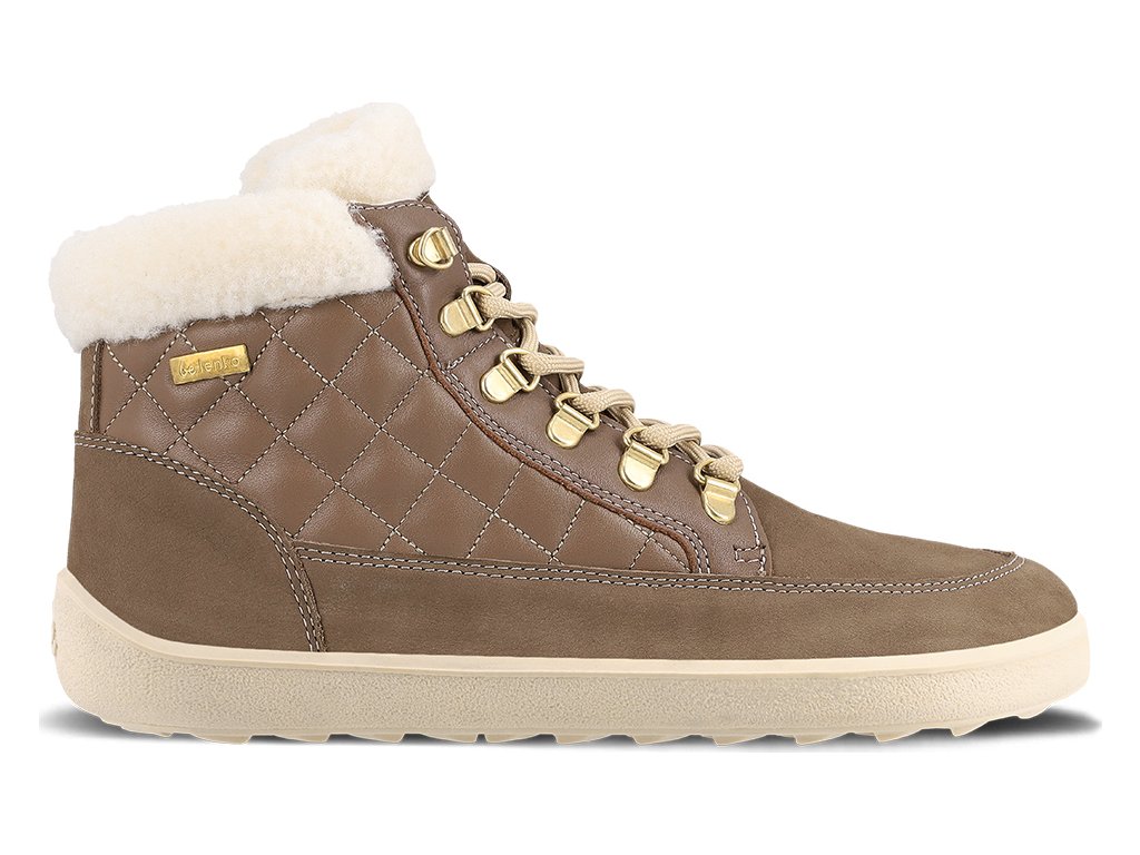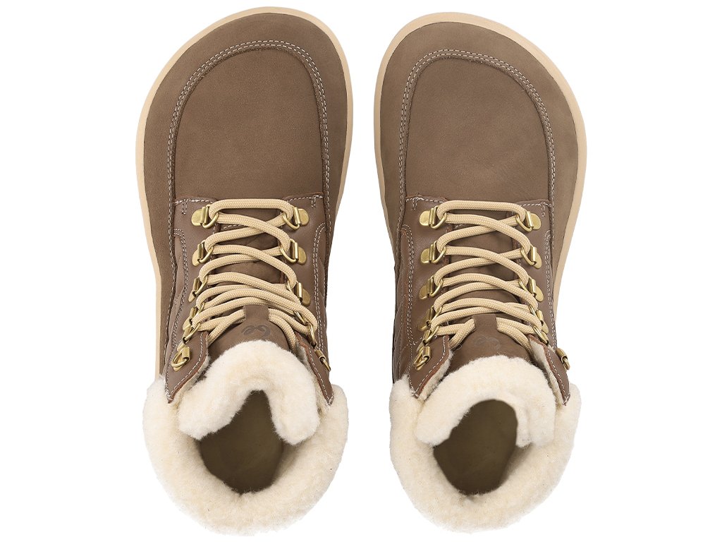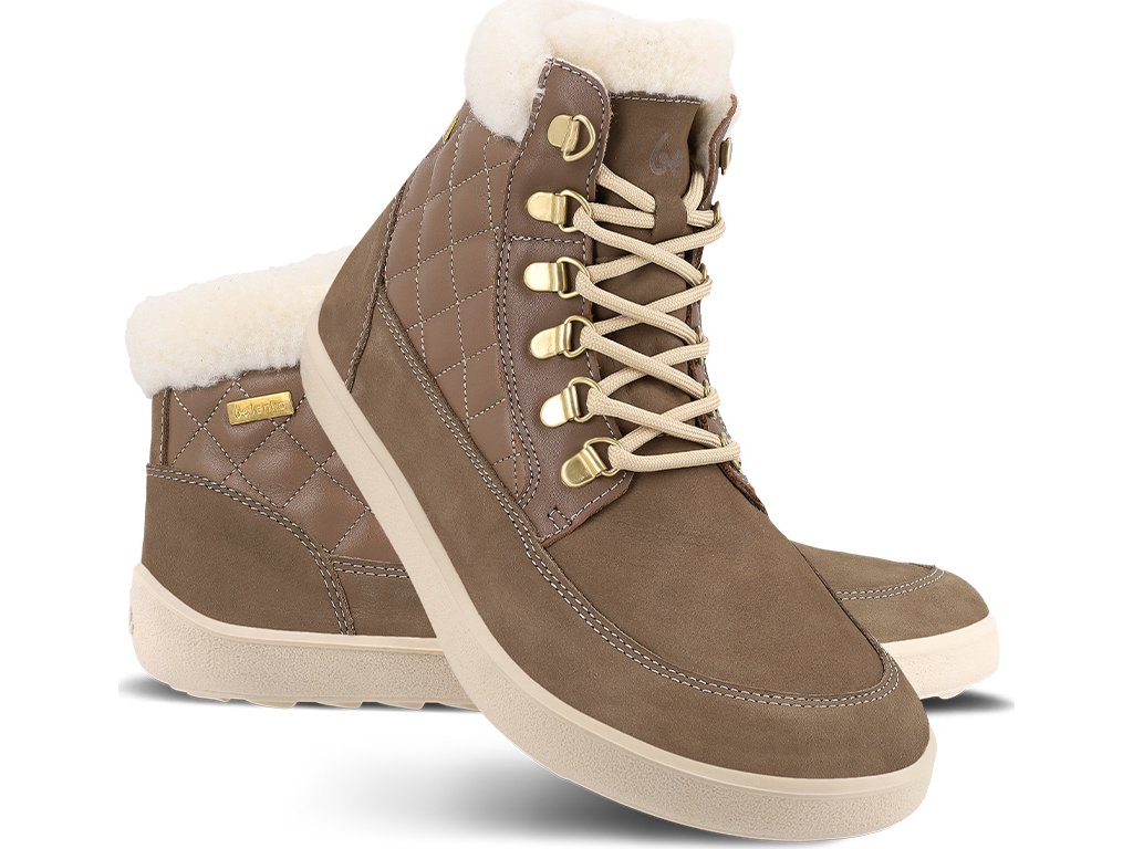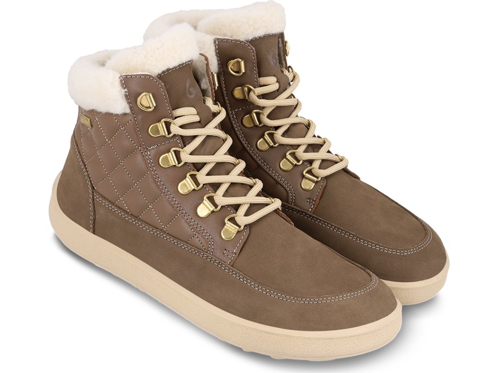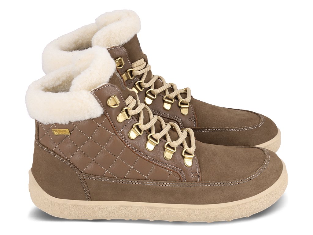 Barefootové kozačky Be Lenka Olivia v oříškově-hnědé barvě jsou dámské elegantní barefoot boty, které rozzáří Váš outfit. Boty zaujmou zlatými detaily, prošívanou kůží a kožešinkou na límci. Univerzálnost zajišťuje právě důmyslný výběr kombinacé kůží.