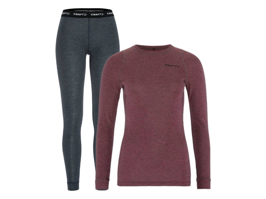 Dámský vysoce funkční set CRAFT CORE Wool Merino kombinující přednosti přírodních materiálů jako je merino vlna s umělými vlákny.