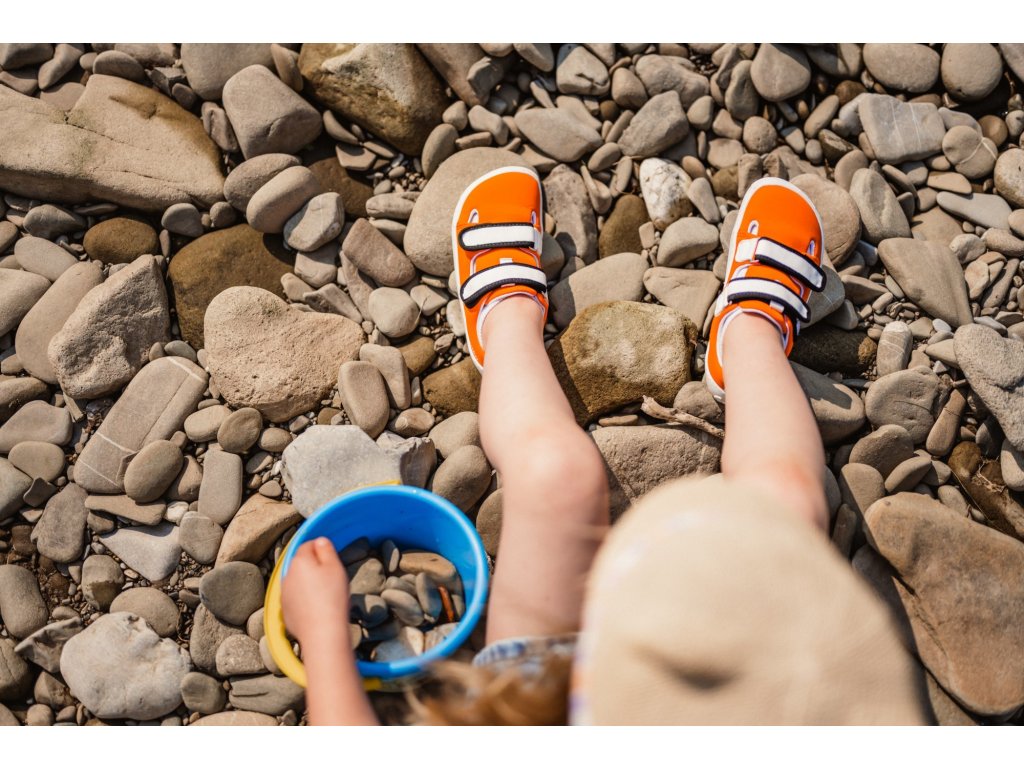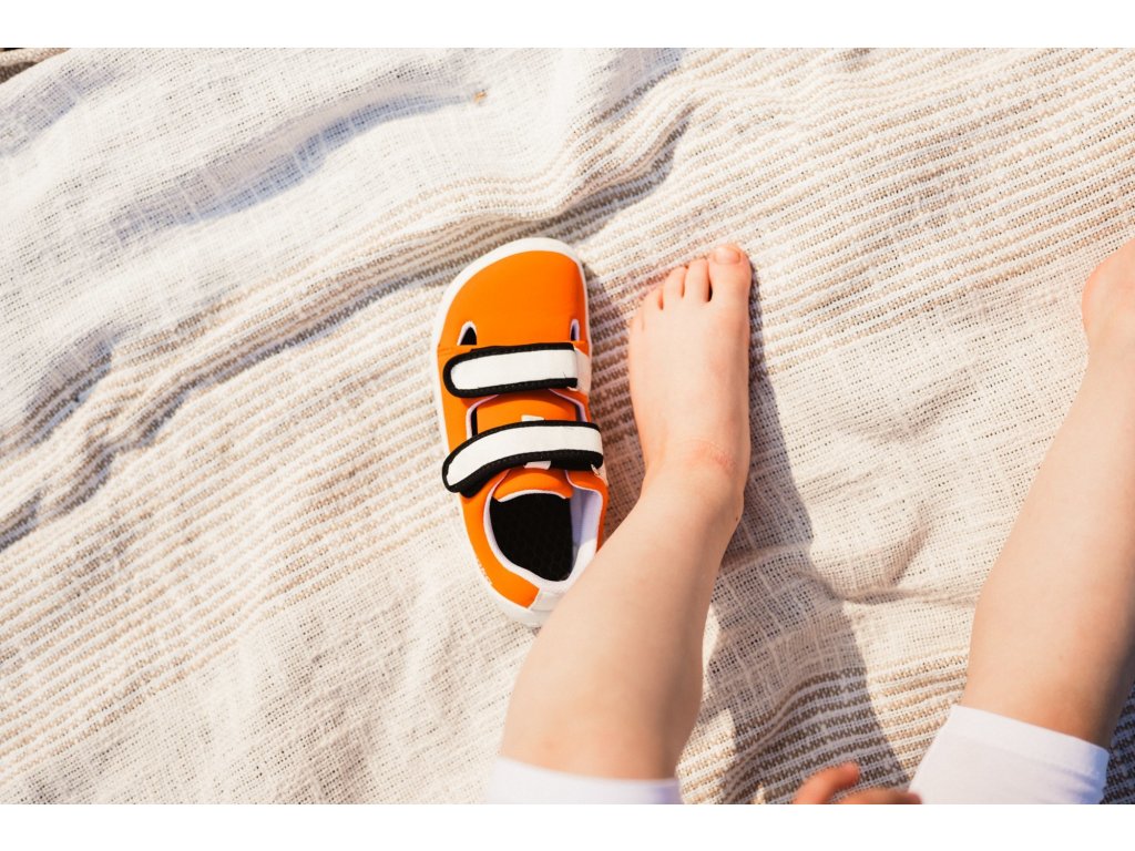 S barefoot boty Be Lenka Seasiders prožijí Vaše děti pohádková dobrodružství. Extrémně lehké a flexibilní materiály s prošitou podešví KidsUltraGrip jsou ideálním základem pro bezstarostné léto. Kombinace oranžové, černé a bílé barvy je ztělesněním populární rybky - klauna očkatého.