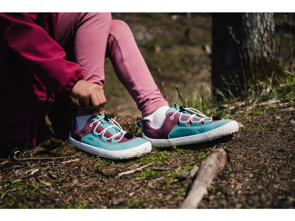 Extrémně lehké dětské barefoot boty Xplorer navrženy pro malé objevitele. Nová podešev KidsUltraGrip s veselým kresleným vzorkem je vyrobená z kvalitní TR gumy. Tenisky ve fialové a modrozelené barevné kombinaci jednoduše dotáhnete efektním stoperem. Sportovní design těchto botek je inspirovaný úžasným světem dinosaurů. Barefoot v tom nejmodernějším provedení pro Vaše nejmenší.