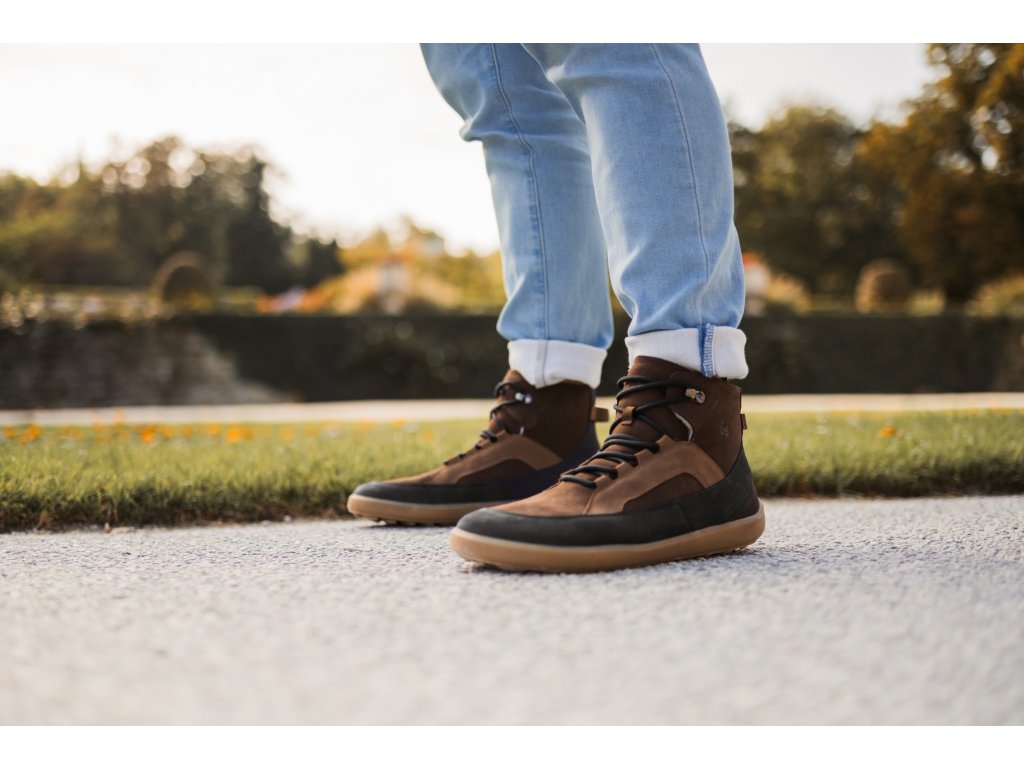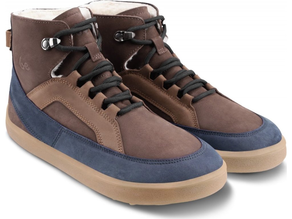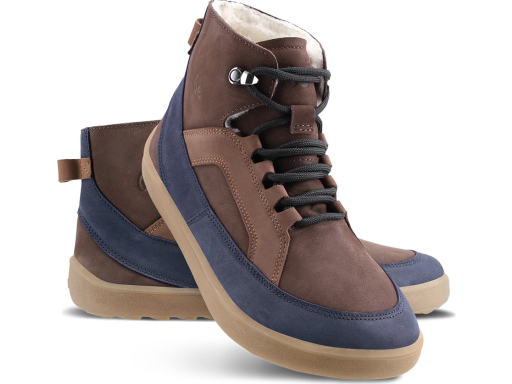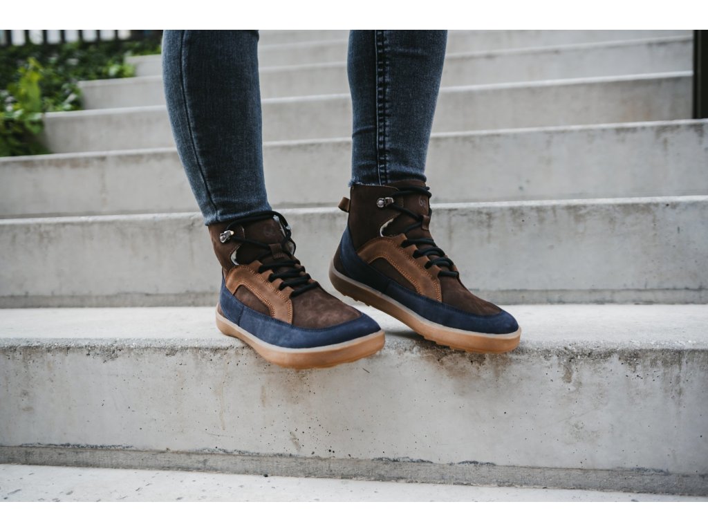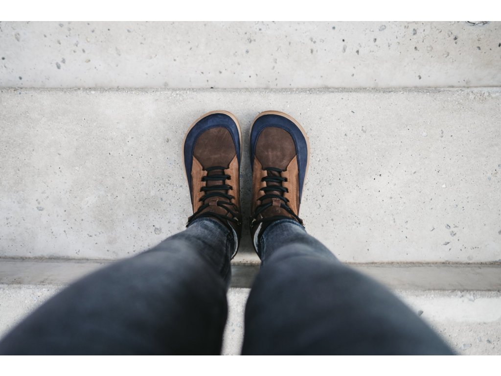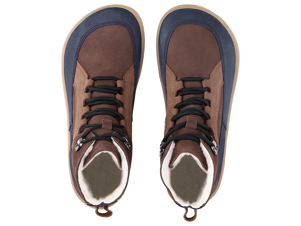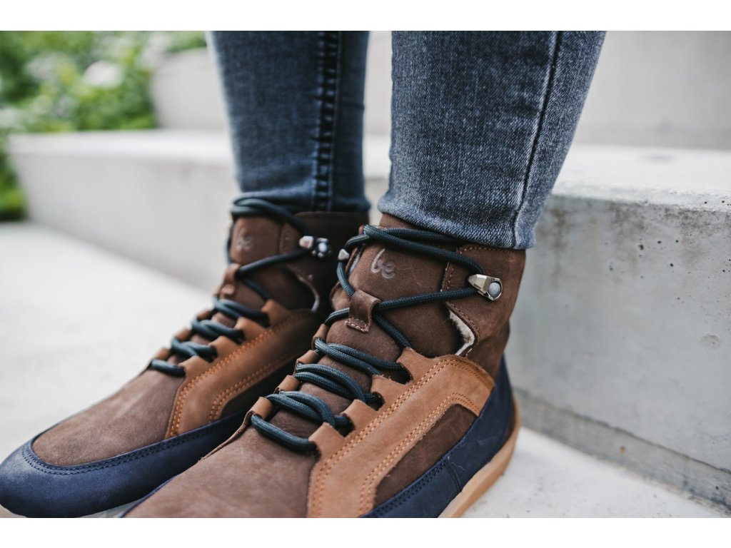 Potřebujete spolehlivého společníka do chladného a proměnlivého počasí? Ve městě i v přírodě Vás v tom případě budou skvěle provázet kotníkové barefoot boty Be Lenka York v hnědé a tmavě modré barvě. Merino vlna a podešev DeepGrip se postarají o to, abyste měli nohy v teple a zaručí bezpečný krok. Svršek bot je z prémiové kůže nubuk v nápaditém designu a se zajímavým uchycením šňůrek.
